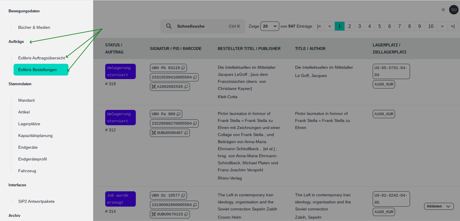 Wählen Sie im Menu Aufträge "Exlibris Bestellungen"