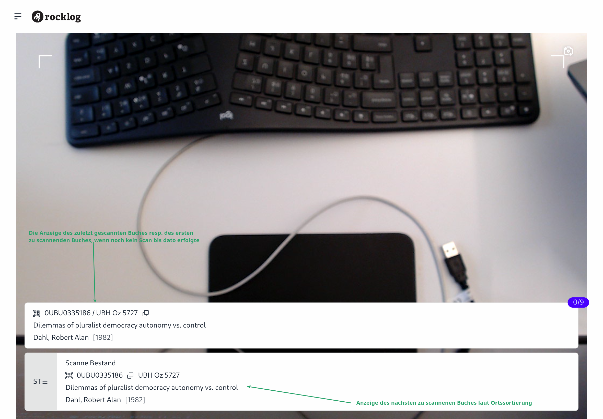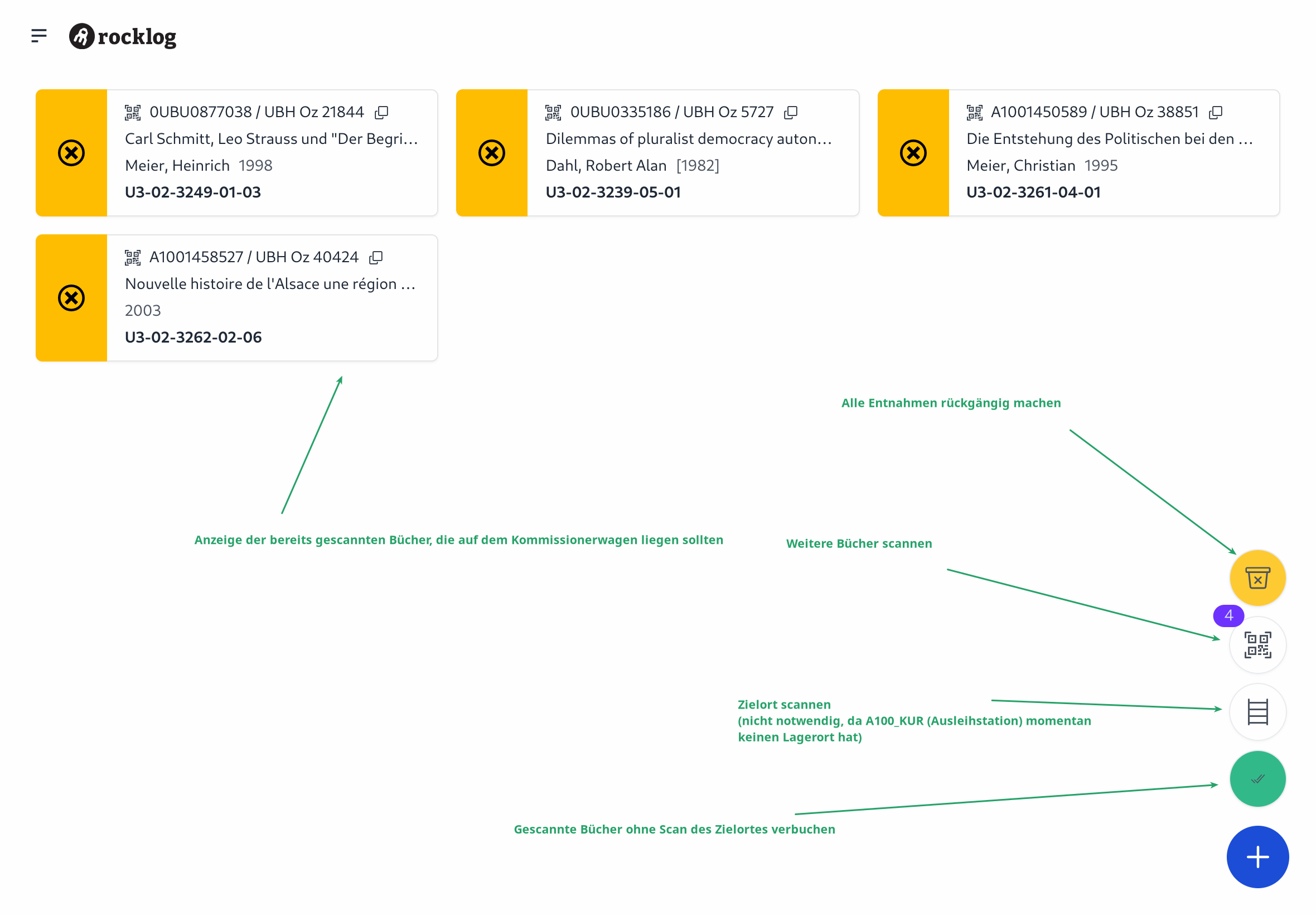 - Ein oder mehrere zur Leihliste gehörende Bücher werden gescannt.