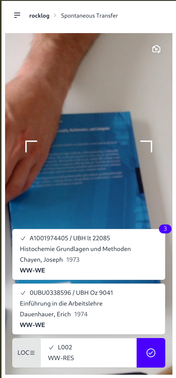 Nutzen Sie diesen Prozess, um Bücher spontan von einem Lagerort zum anderen zu verlagern. Starten Sie den Prozess durch das Scannen von Büchern, gefolgt von einem Scan des Ziellagerortes, um die Umlagerung abzuschließen.