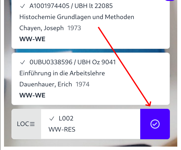 - Falscher Barcode nach Lagerort: Erfassung eines Buch- oder falschen Lagerort-Barcodes nach einem Lagerort-Barcode, erfordert erneutes Scannen eines bekannten Lagerort-Barcodes.