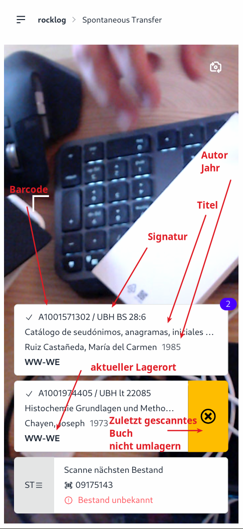 - Unbekannter Barcode: Was passiert, wenn ein unbekannter Barcode für ein Buch gescannt wird.